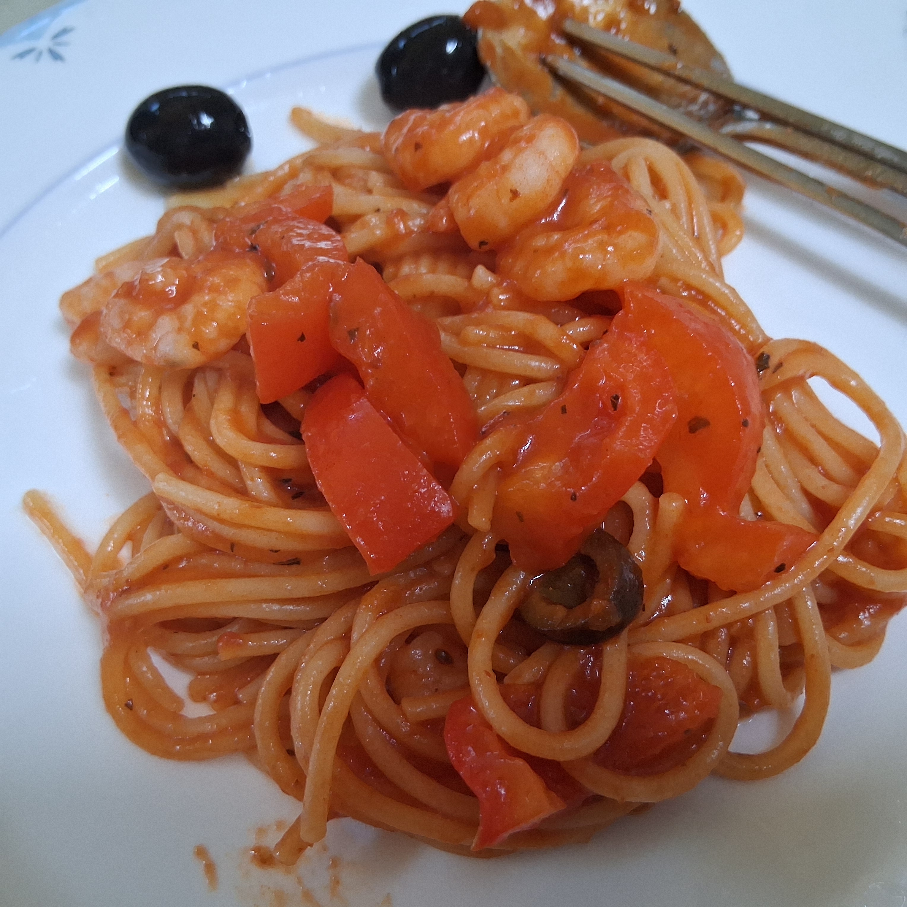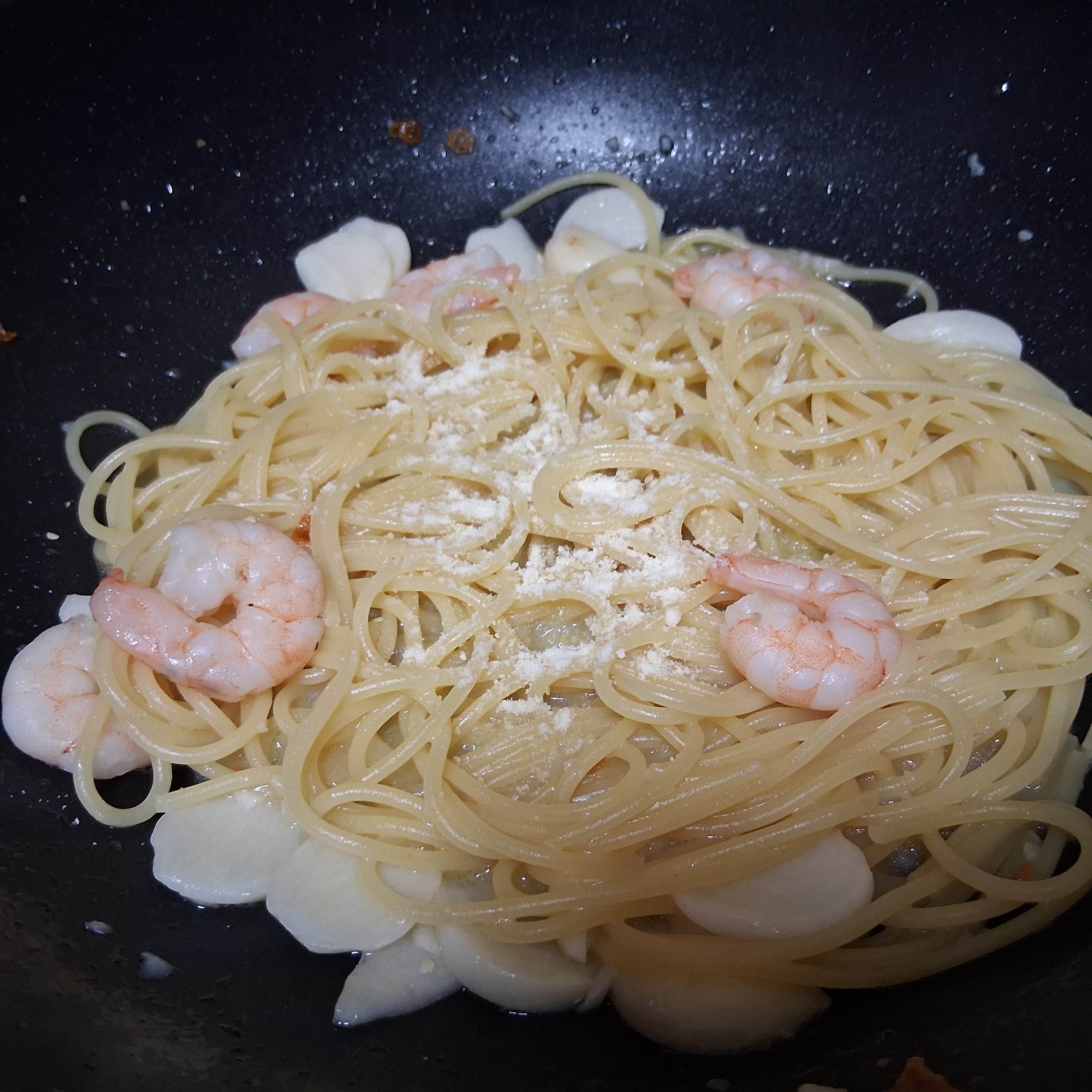 오늘 날씨가 넘 추워졌네요새우알리오올리오 파스타 했습니다완성된 파스타 먹고 있는중입니다올리브오일에 편마늘 넣어 볶다가페퍼로치노 3개 부셔 넣었어요새우를 넣어 달달 볶아서 익혀줍니다충분히 올리브기름 흡입후에물 500미리 넣고 파스타면 동전 만큼 크기로 양 넣어줍니다.이때 참치액젓 한숟가락 넣어요 면이 익으면서 물이 3숟가락정도 남아있을때버터 한수푼 넣어서 졸이고 불끄고파마산 가루 넣고 마무리입니다 맛있는 새우알리오올리오 완성 입니다후루룩 뚝딱 맛있게 냠냠감기 조심하시고 좋은 하루 마무리 하세요