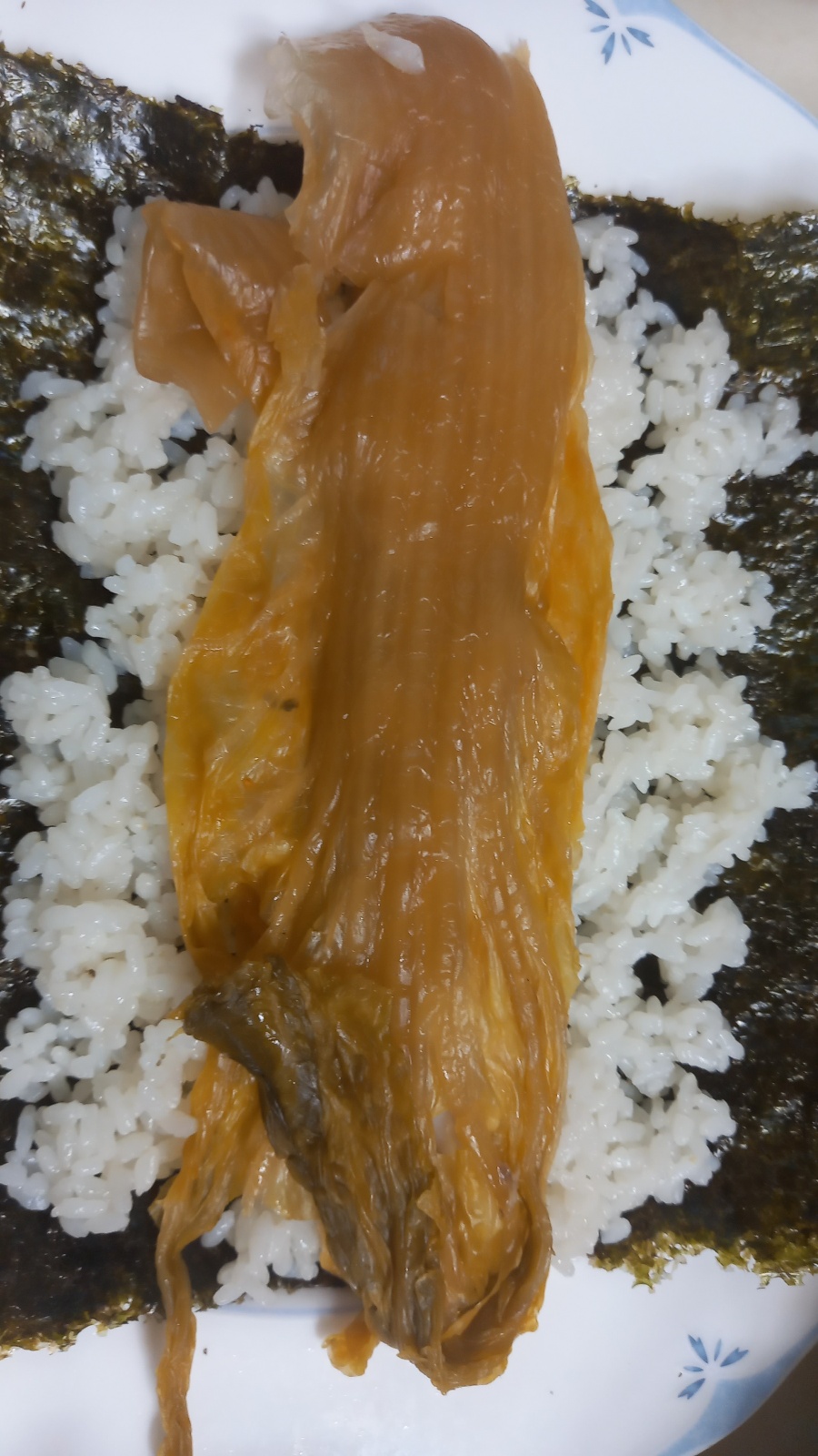 굴비와 묵은지로 간단하면서도 힘나는 굴비 김밥입니다.